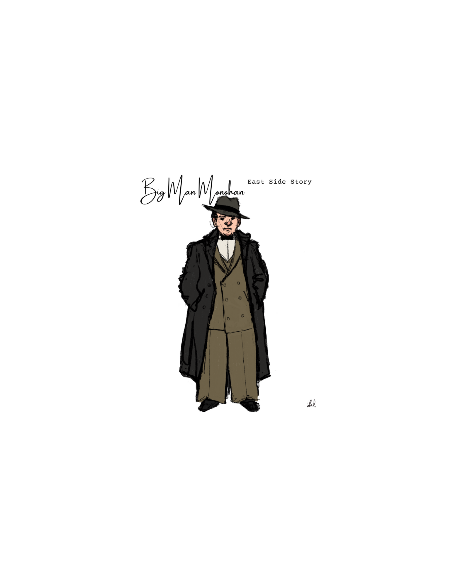 East Side Story is a reimagining of Romeo and Juliet and West Side Story, set in 1920s Lower East Side New York City. The story follows Rowan, a second-generation Irish immigrant, who falls for Judy, a newly arrived Russian Jewish girl. The costume design captures the cultural divide and shared struggles of these two immigrant communities through distinct silhouettes, period-accurate textiles, and contrasting color palettes. Historical research and archival references informed a visual world that feels authentic to the time while supporting the emotional arc of the narrative. The designs reflect both the grit and romance of the era, grounding this timeless love story in a richly textured setting.